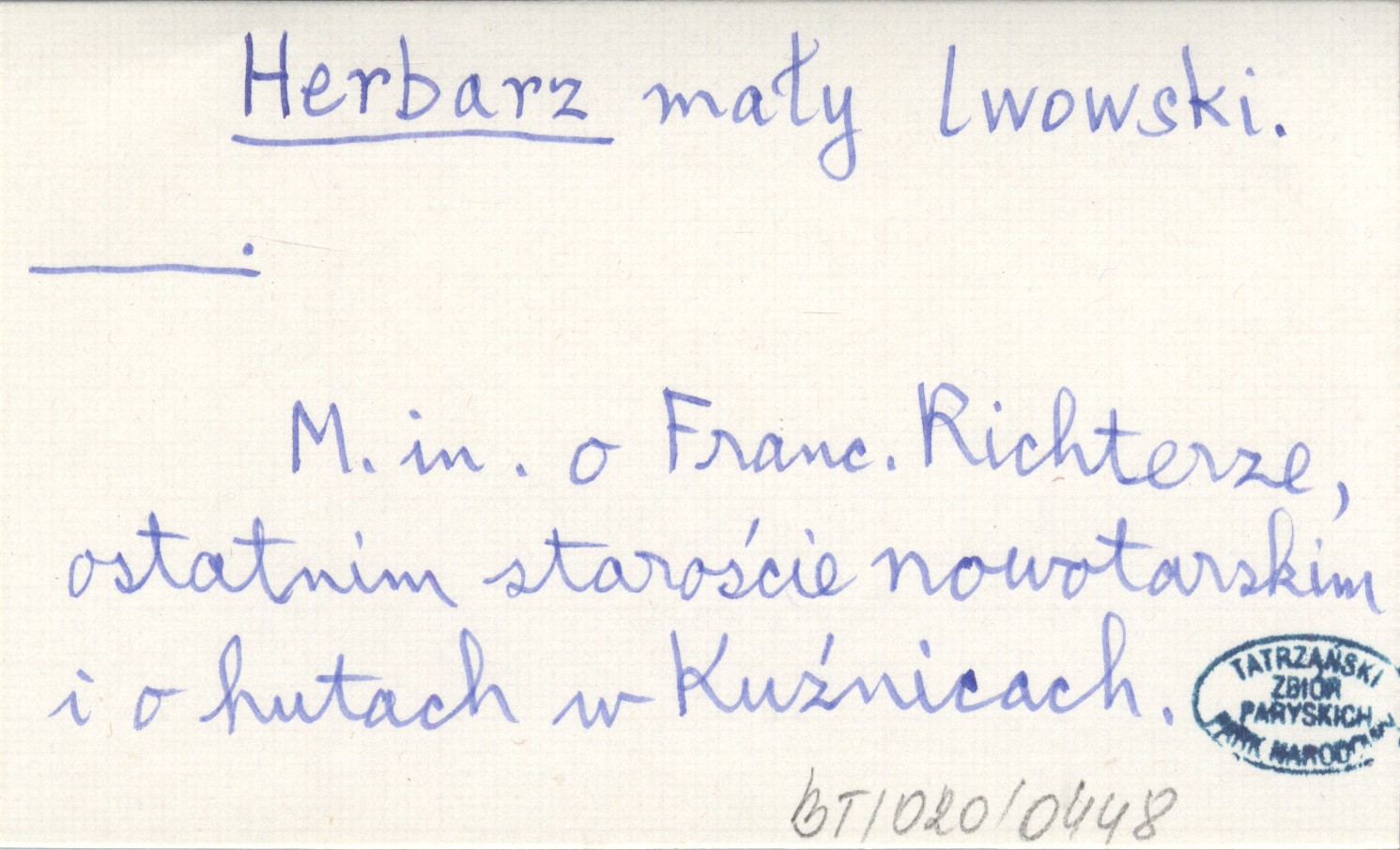 , M. in. o Franc. Richterze, ostatnim staroście nowotarskim i o hutach w Kuźnicach.