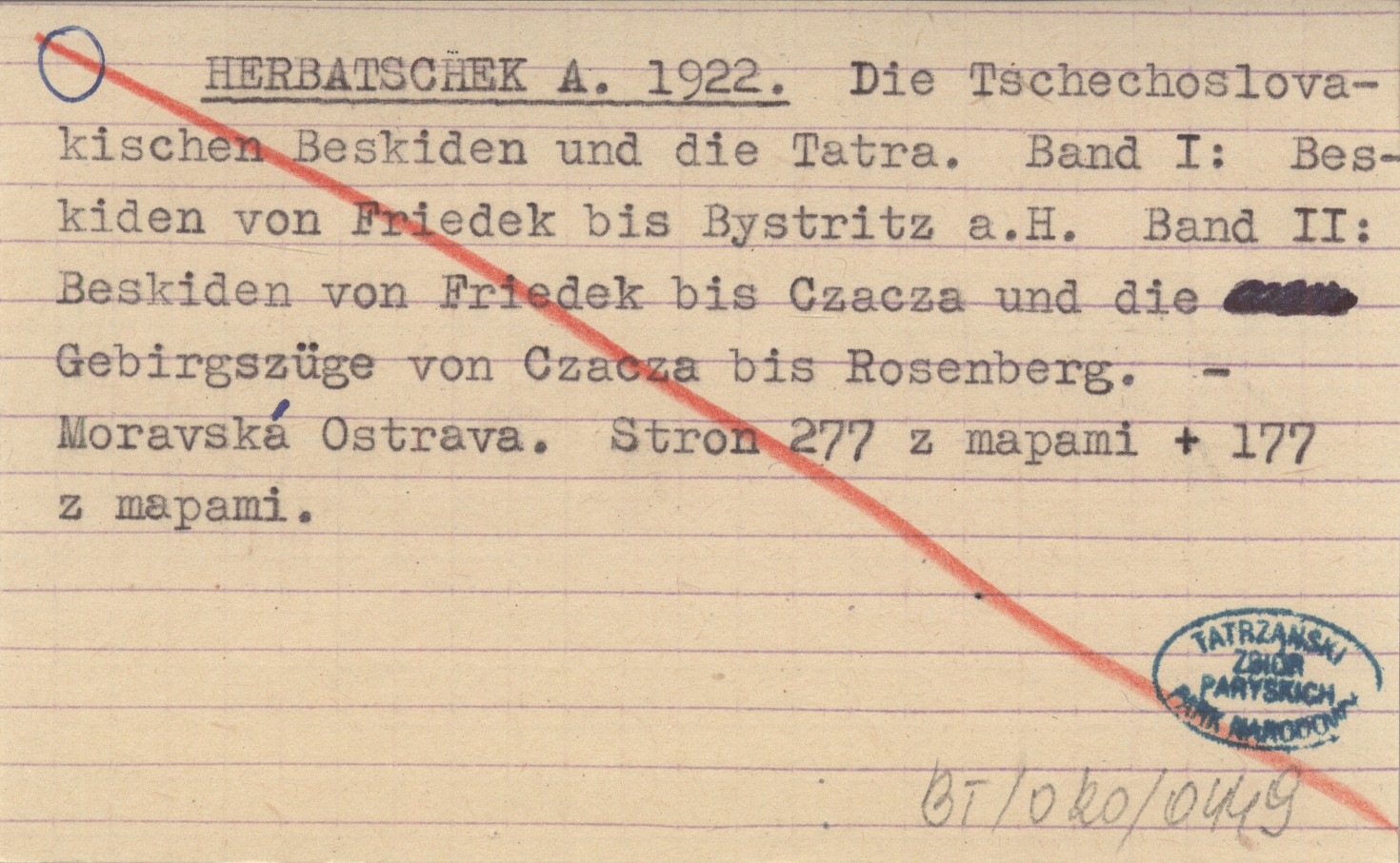 HERBATSCHEK A. 1922 Die Tschechoslovakischen Beskiden und die Tatra. Band I: Beskiden von Friedek bis Bystritz a.H. Band II: Beskiden von Friedek bis Czacza und die Gebirgszüge von Czacza bis Rosenberg.