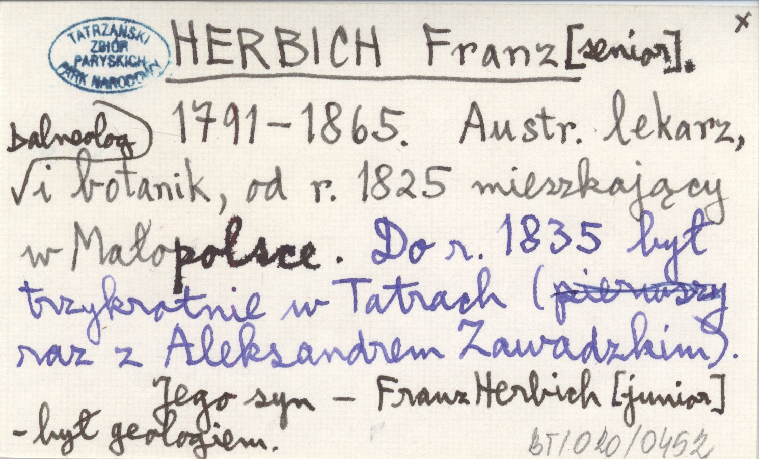 1791-1865. Austr. lekarz, balneolog i botanik, od r. 1825 mieszkający w Małopolsce. Do r. 1835 był trzykrotnie w Tatrach (raz z Aleksandrem Zawadzkim). Jego syn - Franz Herbich [junior] - był geologiem.