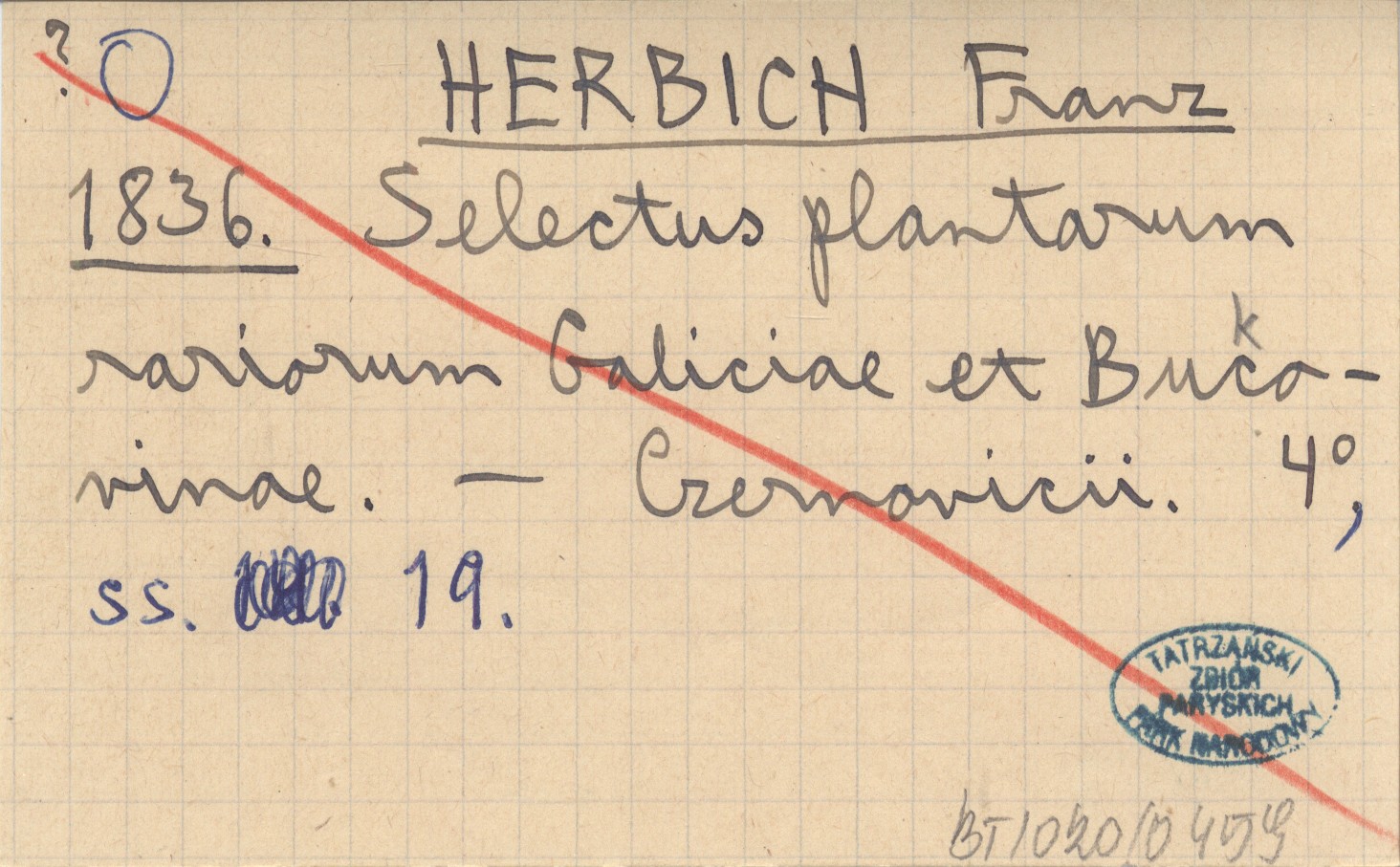 HERBICH Franz 1836 Selectus plantarum rariorum Galiciae et Buc(k)ovinae.