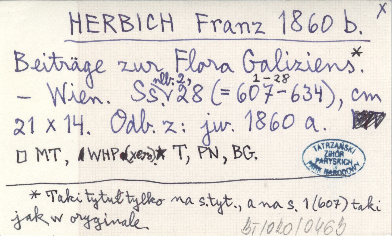 HERBICH Franz 1860 b Beiträge zur Flora Galiziens.