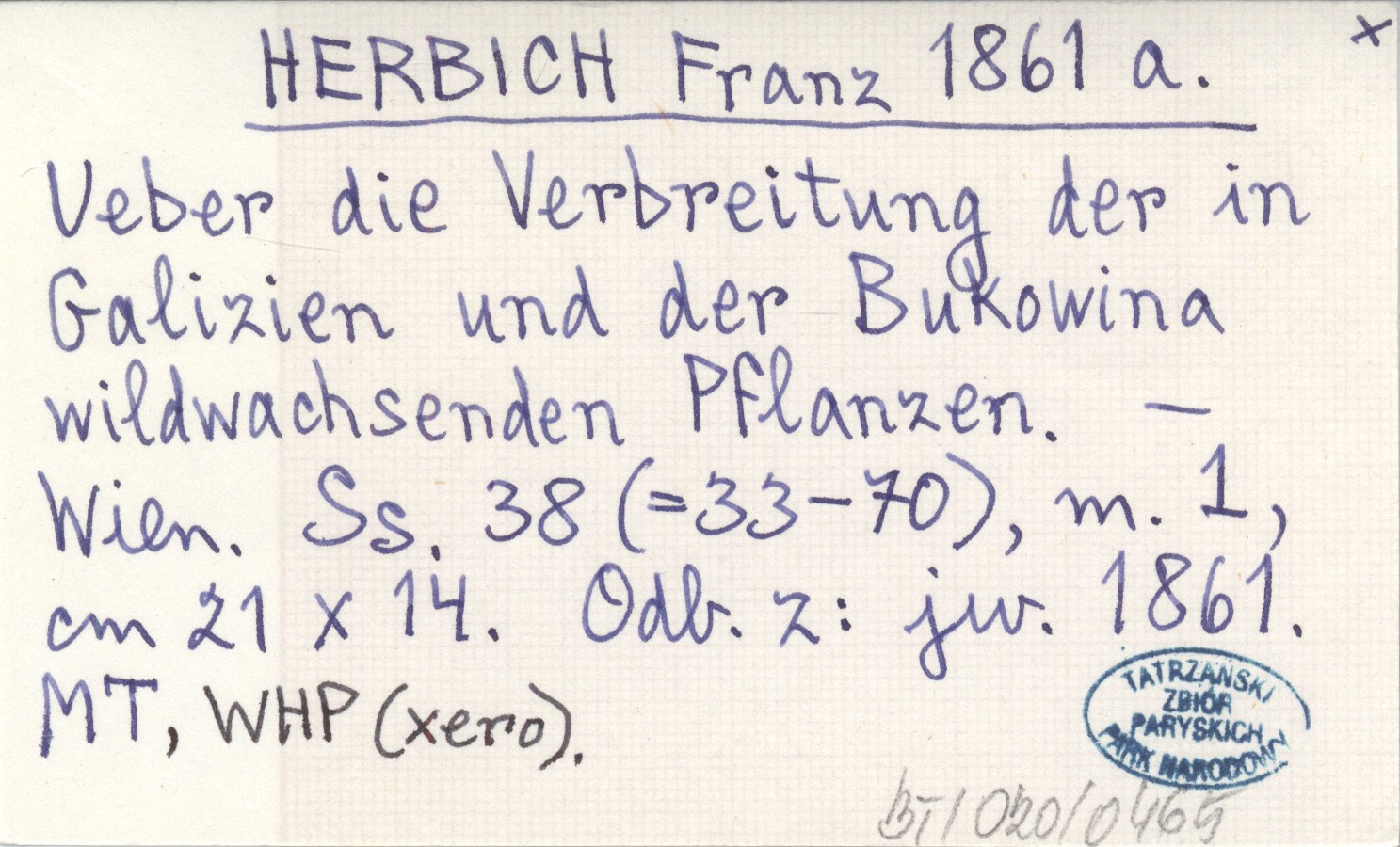 HERBICH Franz 1861 a Ueber die Verbreitung der in Galizien und der Bukowina wildwachsenden Pflanzen.