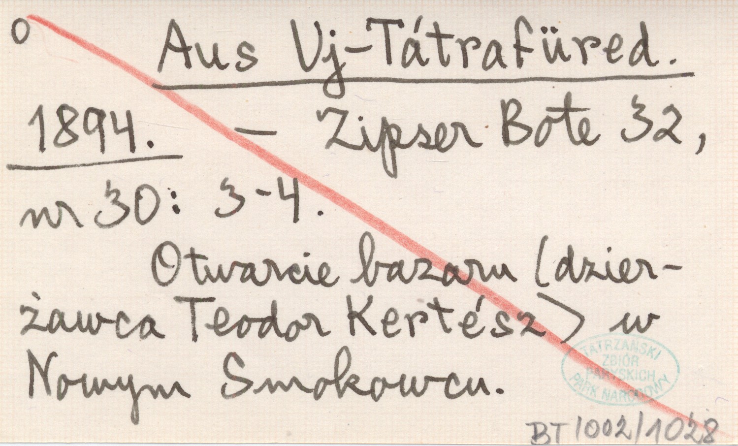 Zipser Bote, 32, nr 30: 3-4. Otwarcie bazaru (dzierżawca Teodor Kertész) w Nowym Smokowcu.