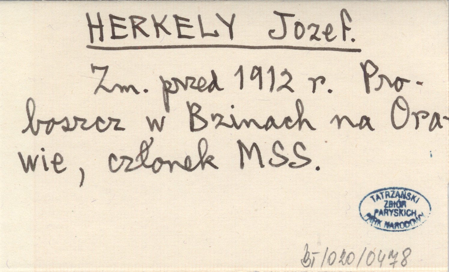 Zm. przed 1912 r. Proboszcz w Bzinach na Orawie, członek MSS.