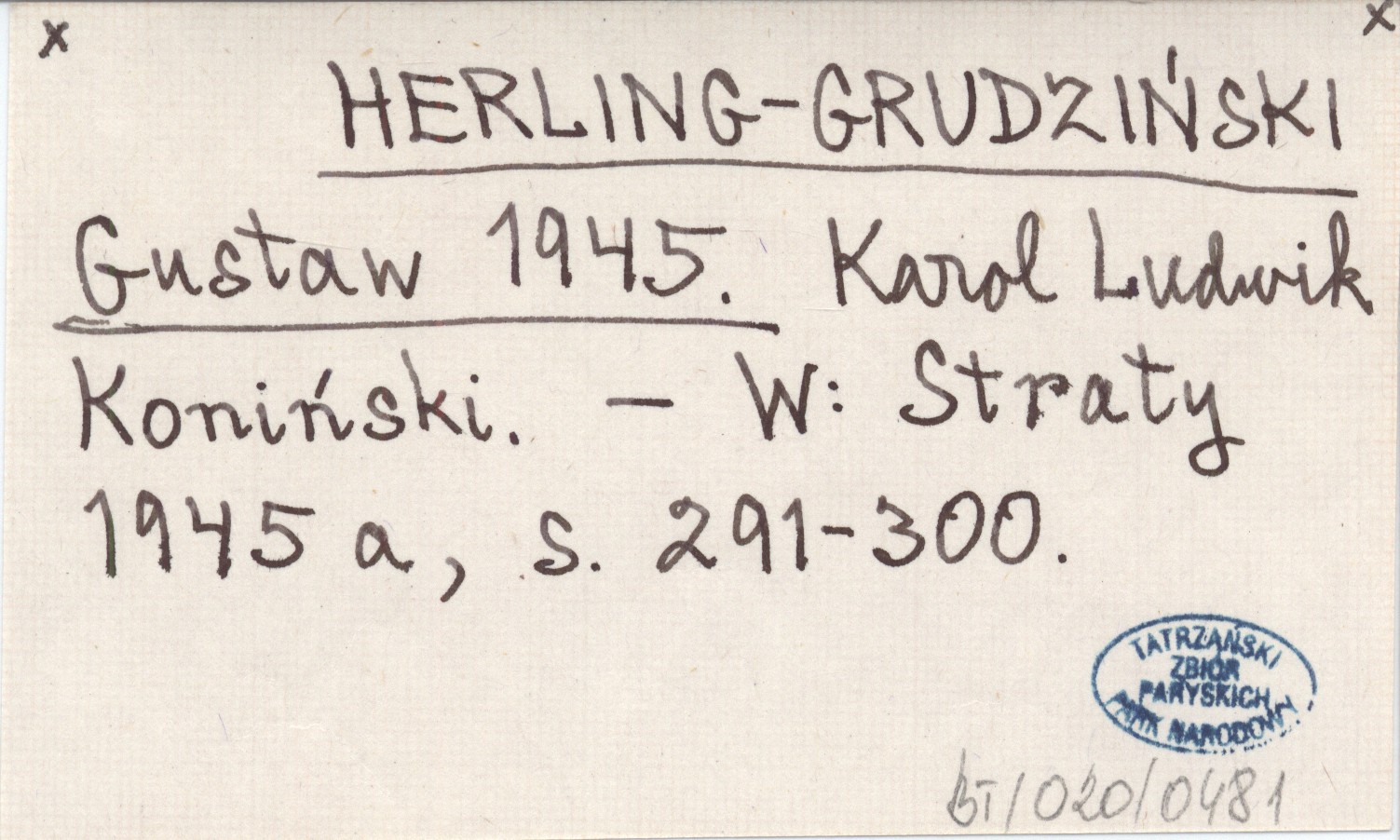 HERLING-GRUDZIŃSKI Gustaw 1945 Karol Ludwik Koniński.