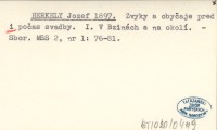 HERKELY Jozef 1897 Zvyky a obyčaje pred i počas svadby. I. V Bzinách a na okolí.