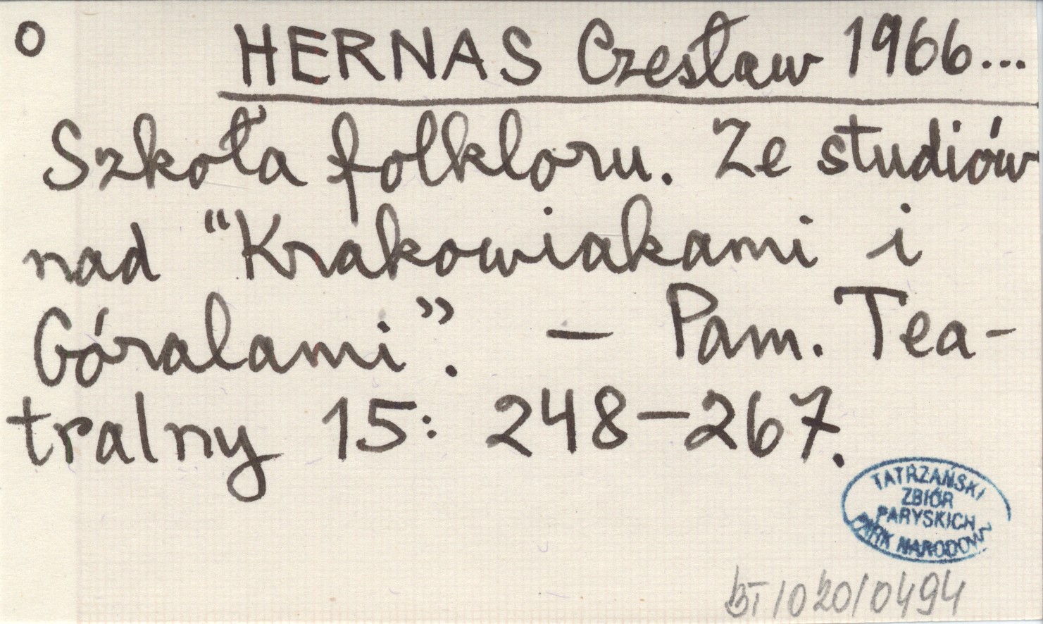 HERNAS Czesław 1966... Szkoła folkloru. Ze studiów nad "Krakowiakami i Góralami".