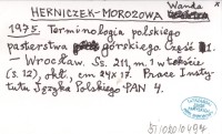 HERNICZEK-MOROZOWA Wanda 1975 Terminologia polskiego pasterstwa górskiego. Część 1.