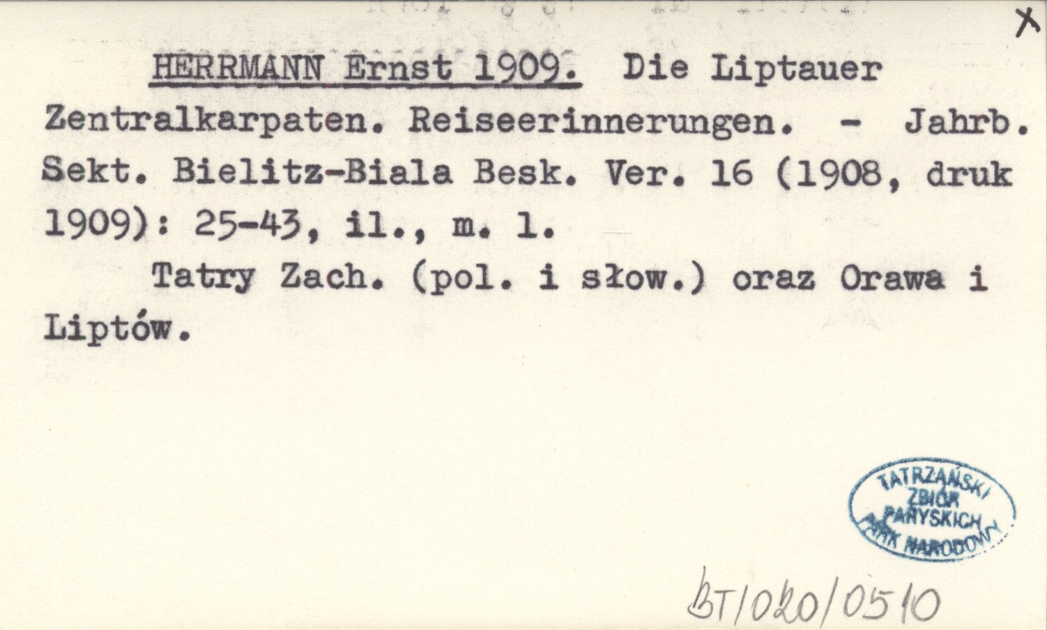 Jahresbericht der Sektion Bielitz-Biala des Beskiden-Vereines, 16 (1908, druk 1909): 25-43, il., 1 m. Tatry Zachodnie (polskie i słowackie) oraz Orawa i Liptów.