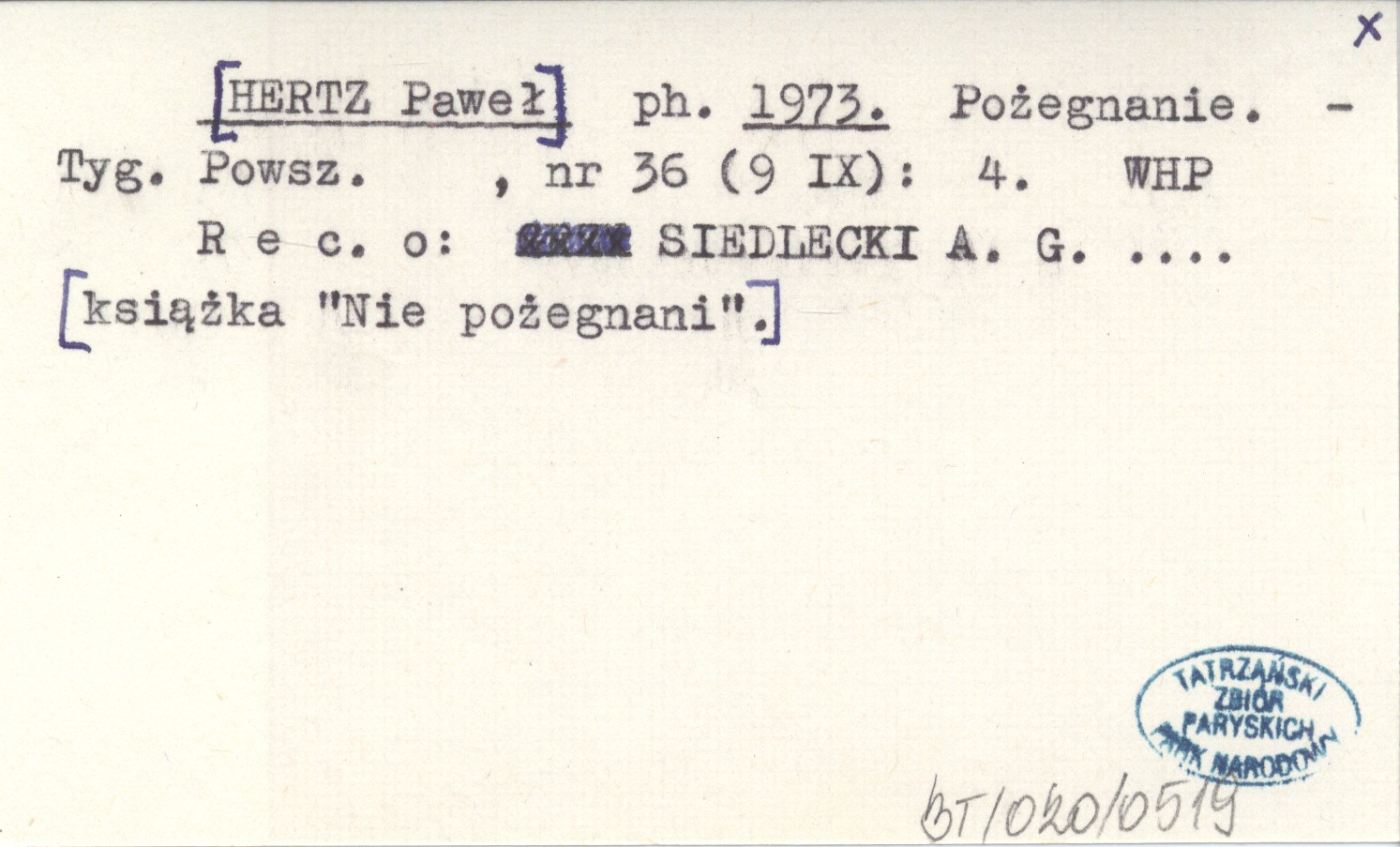 Tygodnik Powszechny, Nr 36 (9 IX): 4. Rec. o: SIEDLECKI A. G. ... [książka "Nie pożegnani"].