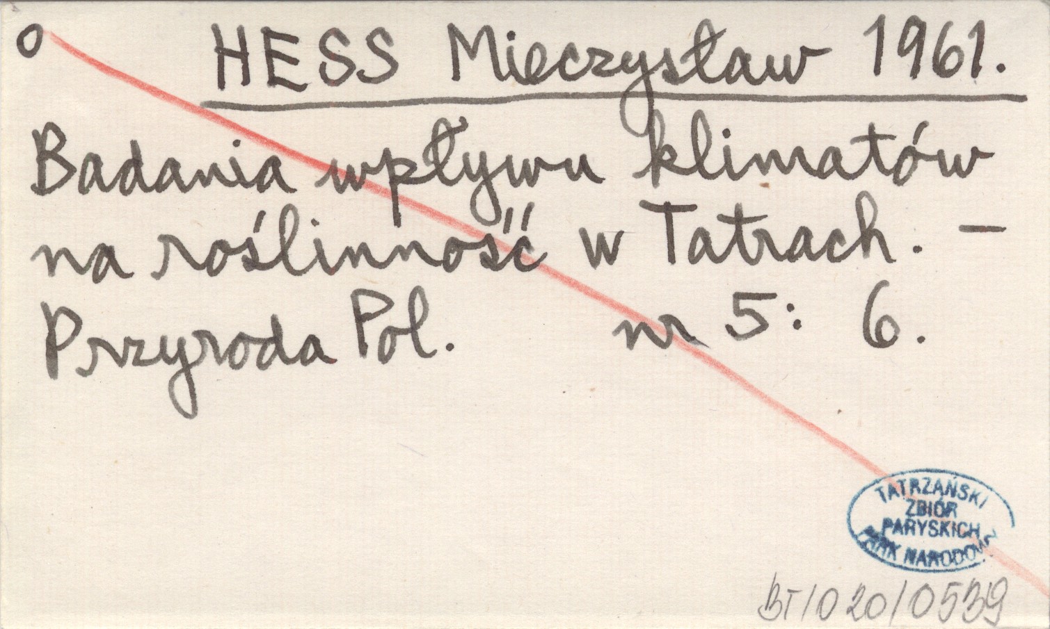 HESS Mieczysław 1961 Badania wpływu klimatów na roślinność w Tatrach.