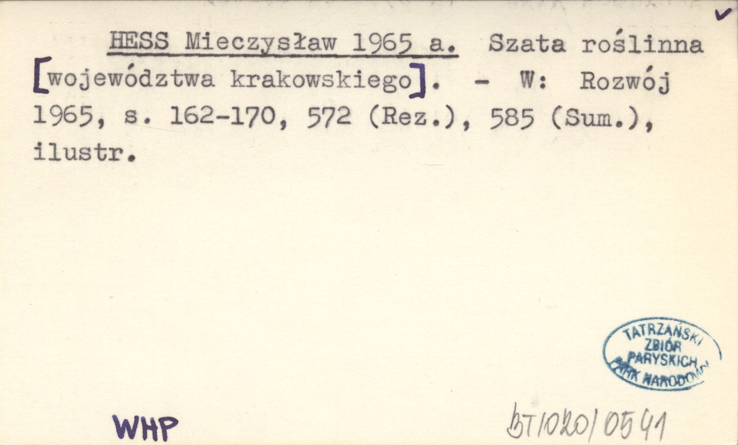 HESS Mieczysław 1965 a Szata roślinna [województwa krakowskiego].
