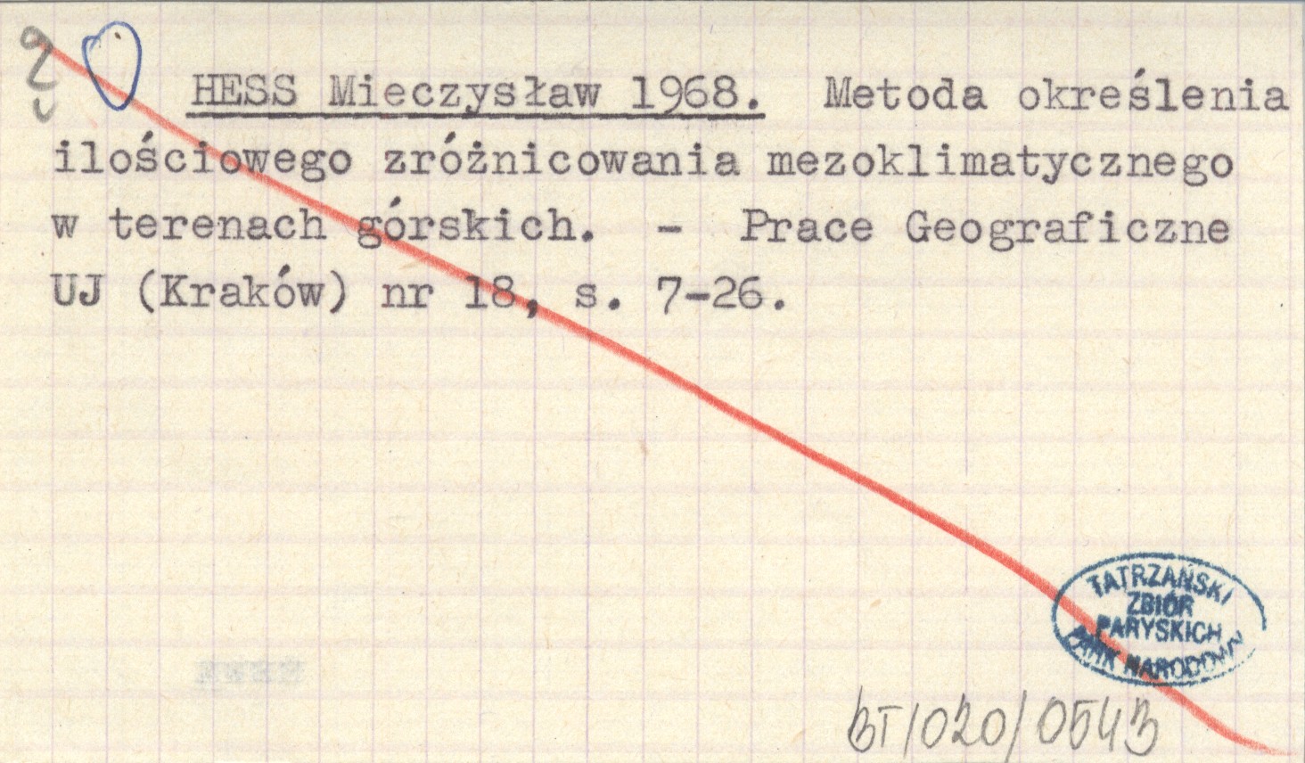 HESS Mieczysław 1968 Metoda określenia ilościowego zróżnicowania mezoklimatycznego w terenach górskich.
