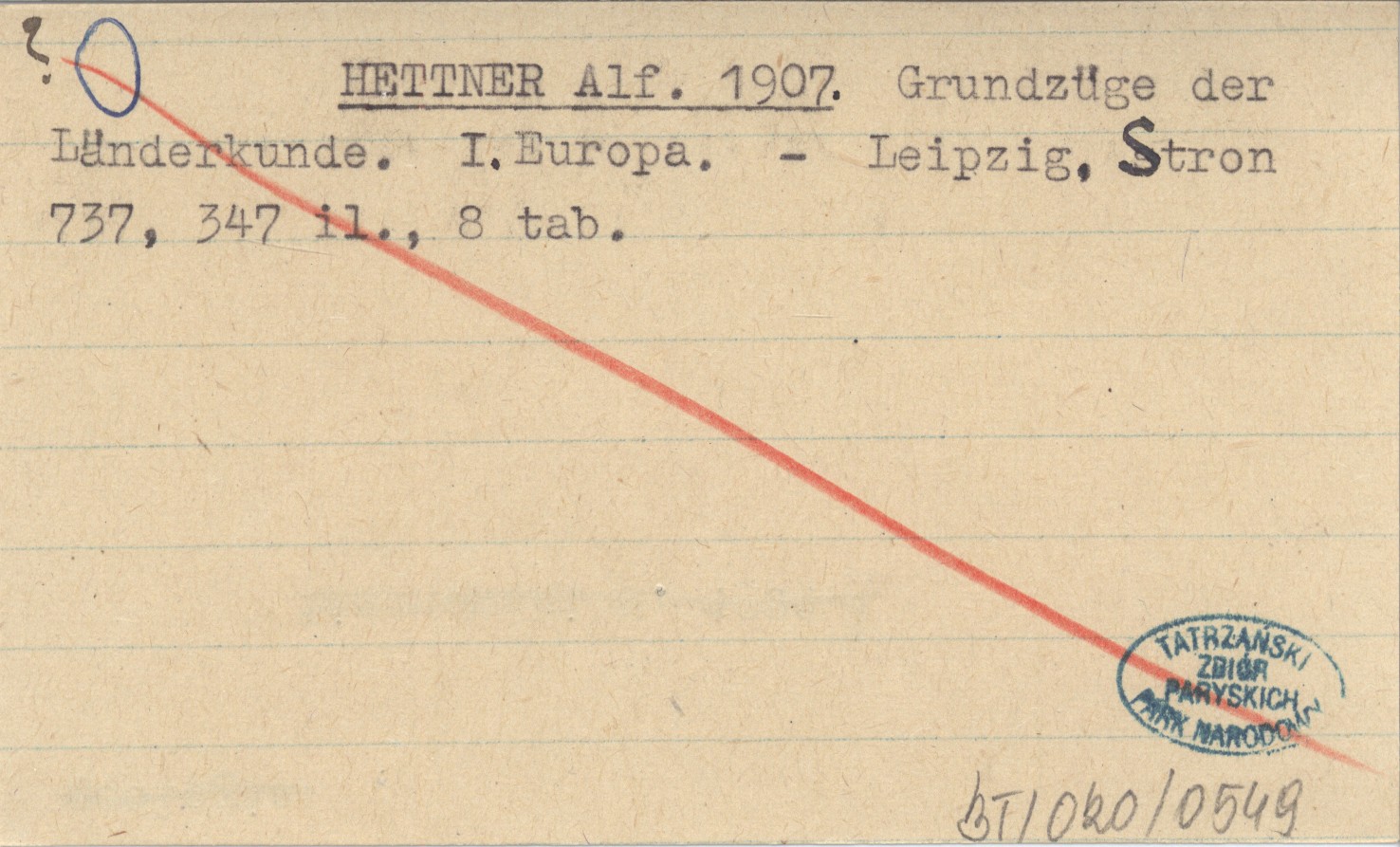 HETTNER Alf. 1907 Grundzüge der Länderkunde. I. Europa.