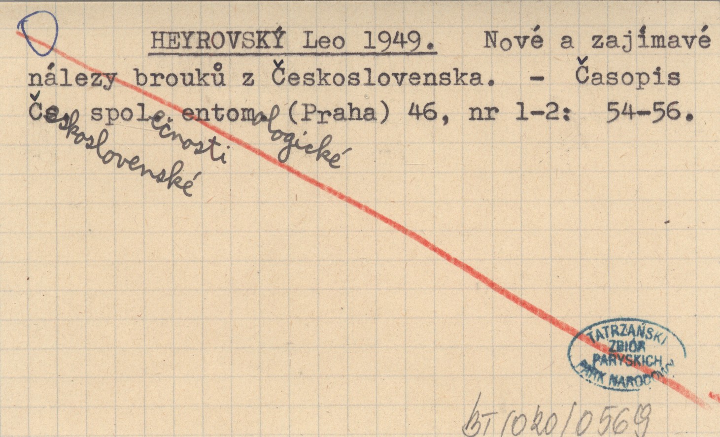 HEYROVSKÝ Leo 1949 Nové a zajímavé nálezy brouků z Československa.