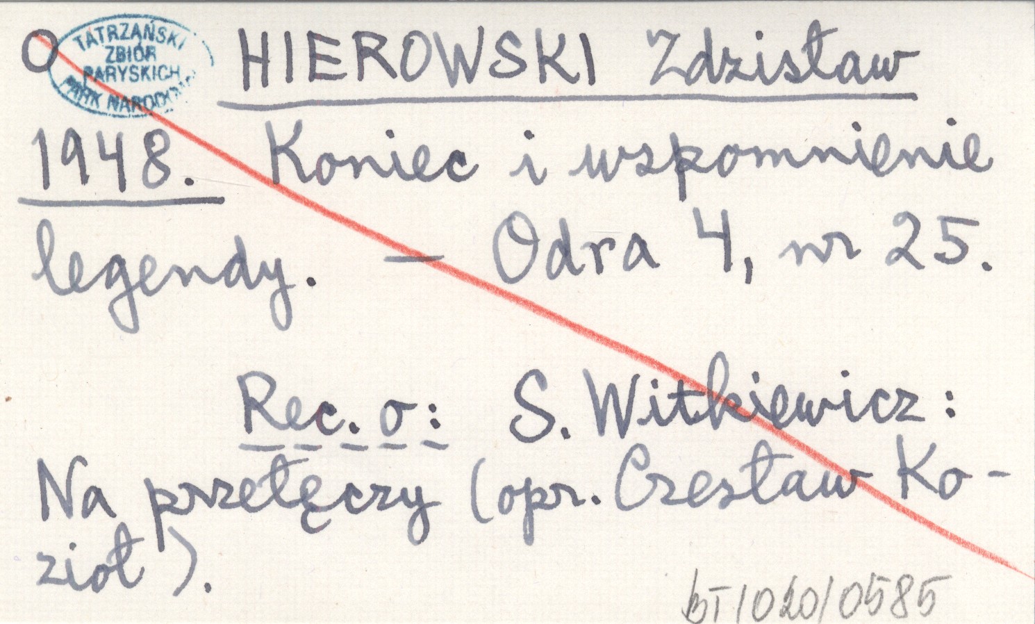 HIEROWSKI Zdzisław 1948 Koniec i wspomnienie legendy.