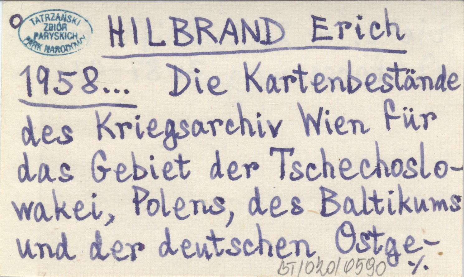 HILBRANDT Erich 1958... Die Kartenbestände des Kriegsarchiv Wien für das Gebiet der Tschechoslowakei, Polens, des Baltikums und der deutschen Ostgebiete.