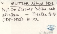 HILITZER Alfred 1939 Prof. Dr. Jaromír Klika padesátníkem.