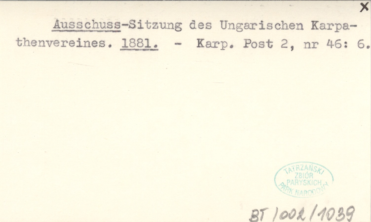 Ausschuss- Sitzung des Ungarischen Karpathenvereines. 1881
