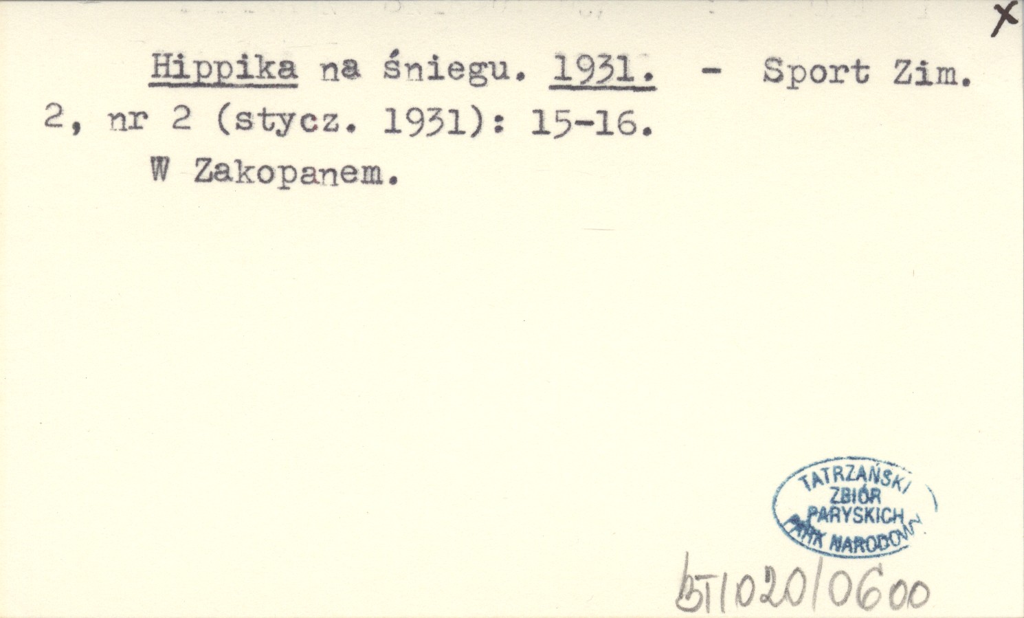 Sport Zimowy, 2, nr 2 (01.1931): 15-16. W Zakopanem.