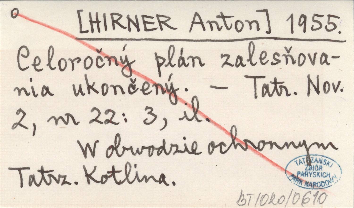[HIRNER Anton] 1955 Celoročný plán zalesňovania ukončený.