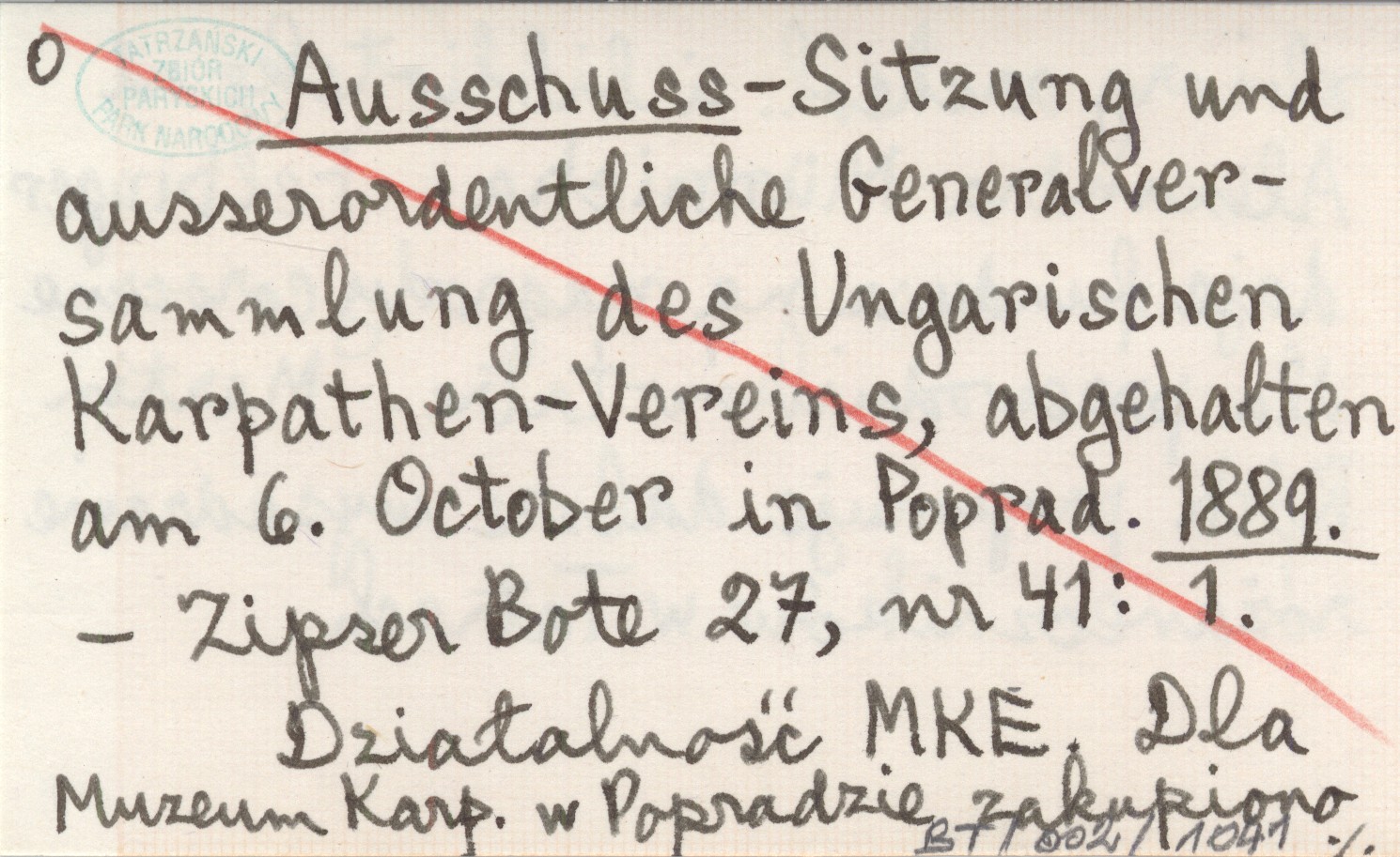 Zipser Bote, 27, nr 41: 1. Działalność MKE. Dla Muzeum Karp. w Popradzie zakupiono zbiory archeol. i bibliotekę od Alexandra Münnicha. Felbinger daje fundusz na nagrody coroczne dla przewodników tatrz. Martin Róth proponuje dalsze wysadzenie różaneczników w Tatrach.