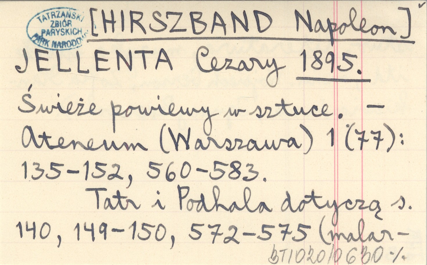 Ateneum (Warszawa) , 1 (77): 135-152, 560-583. Tatr i Podhala dotyczą S. 140, 149-150, 572-575 (malarstwo, literatura, muzyka itd., m. in. Wojciech Gerson, Zofia Stankiewiczówna, Ignacy Paderewski).
