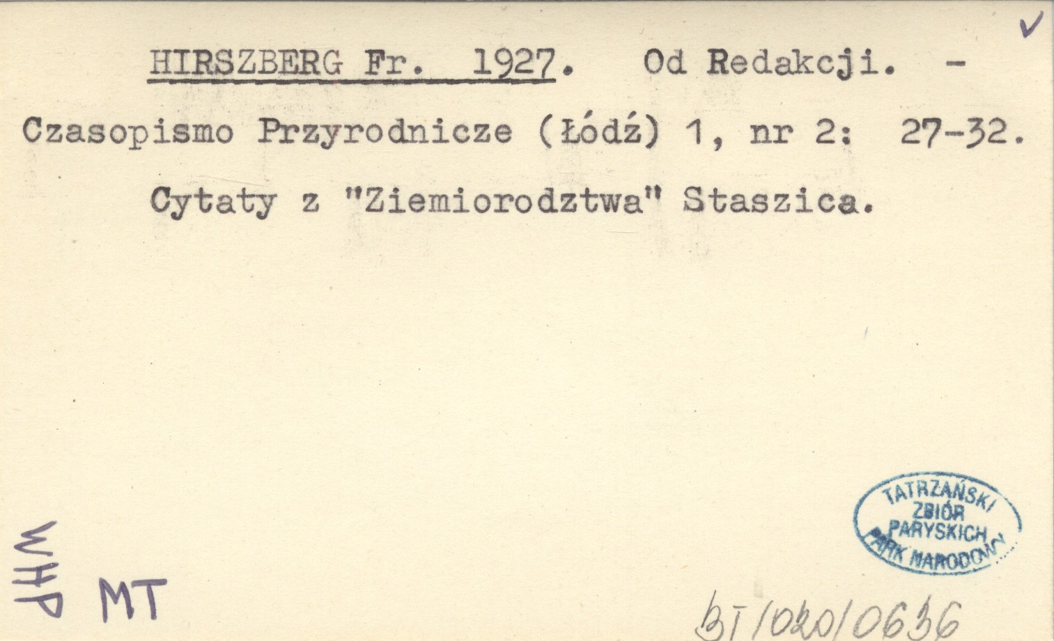Czasopismo Przyrodnicze (Łódź) , 1, nr 2: 27-32. Cytaty z "Ziemiorodztwa" Staszica.
