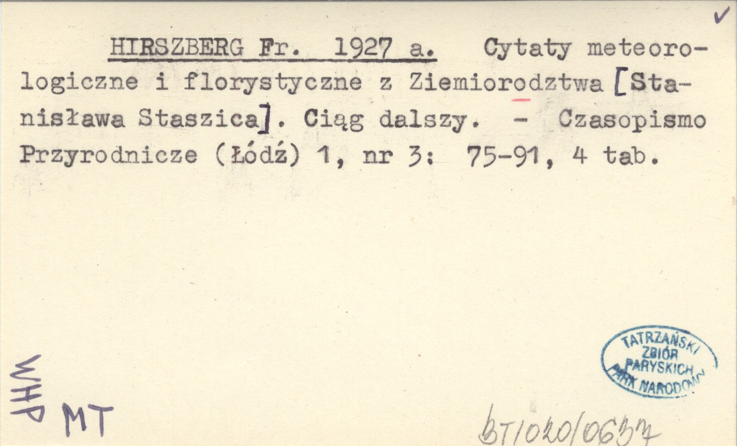 HIRSZBERG Fr. 1927 a Cytaty meteorologiczne i florystyczne z Ziemiorodztwa [Stanisława Staszica]. Ciąg dalszy.
