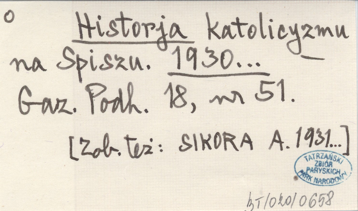 Gazeta Podhalańska, 18, nr 51. [Zob. też: SIKORA A. 1931...].