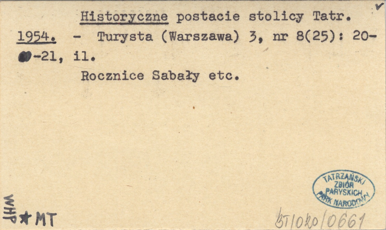 Turystyka (Warszawa) , 3, nr 8 (25): 20-21, il. Rocznice Sabały etc.