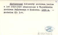 Historyczne dokumenty archiwum Lenina z lat 1912-1914 odnalezione w Wojewódzkim Archiwum Państwowym w Krakowie. 1954 a