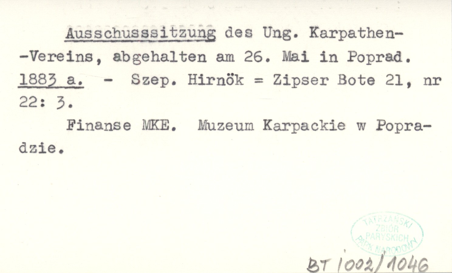 Ausschussitzung des Ung. Karpathen-Vereins, abgehalten am 26. Mai in Poprad. 1883 a