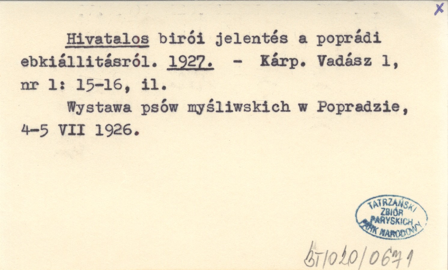 Kárp. Vadász, 1, nr 1: 15-16, il. Wystawa psów myśliwskich w Popradzie, 4-5 VII 1926.