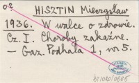 HISZTIN Mieczysław 1936 W walce o zdrowie. Cz. I. Choroby zakaźne.
