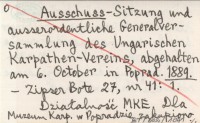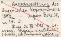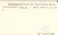 Ausschuss- Sitzung des Ungarischen Karpathenvereines. 1881 a