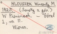 HLOUSZEK Wincenty M. 1925 (Sonety z gór). W Pieninach.