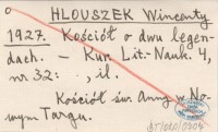 HLOUSZEK Wincenty 1927 Kościół o dwu legendach. (Errectum A.D. 1219. Budowniczymi zbójnicy. Starożytni zbójnicy. Starożytne obrazy. Woskowa ręka. Malowidła H. Lipińskiego).