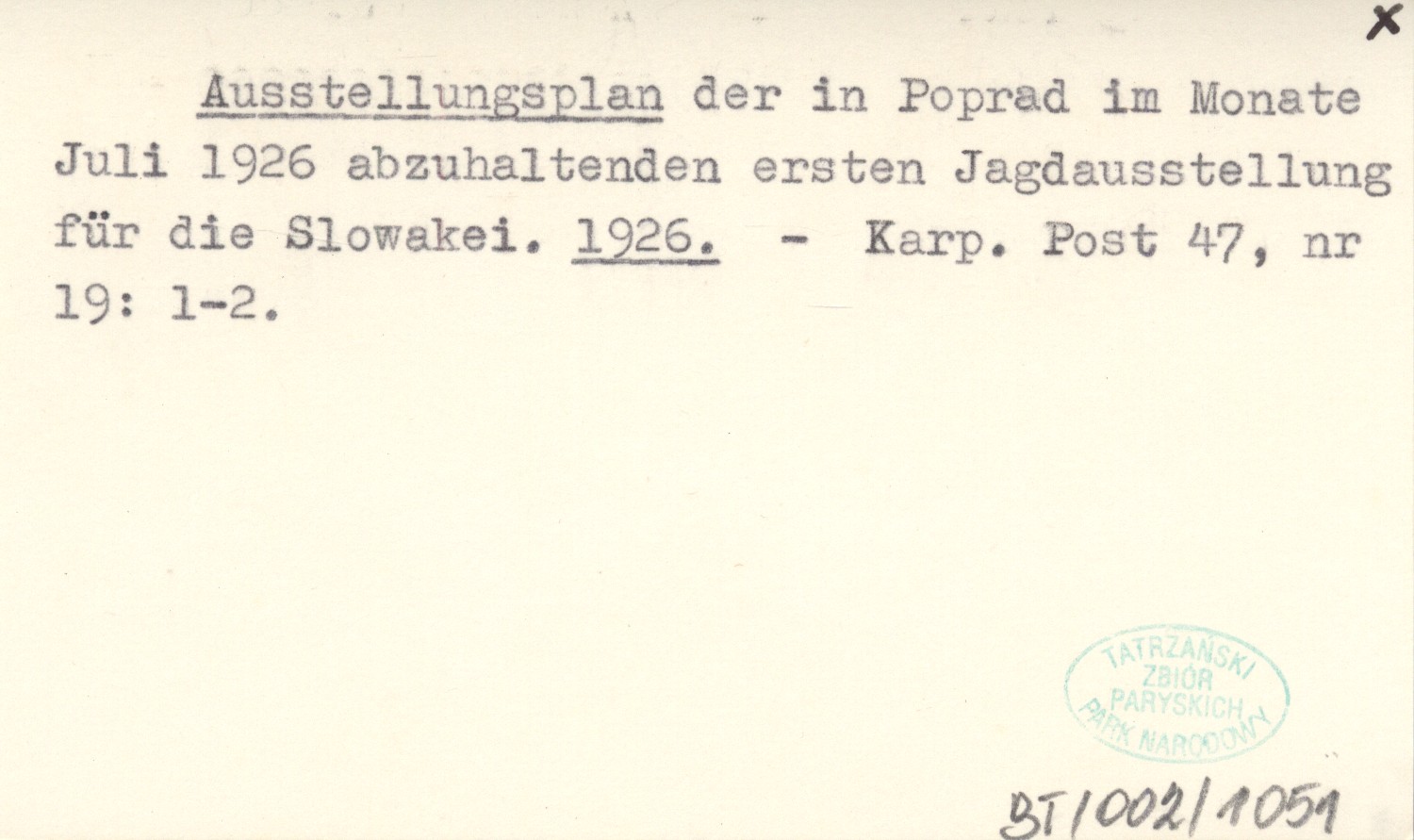 Ausstellungsplan der in Poprad im Monate Juli 1926 abzuhaltenden ersten Jagdausstellung für die Slowakei. 1926