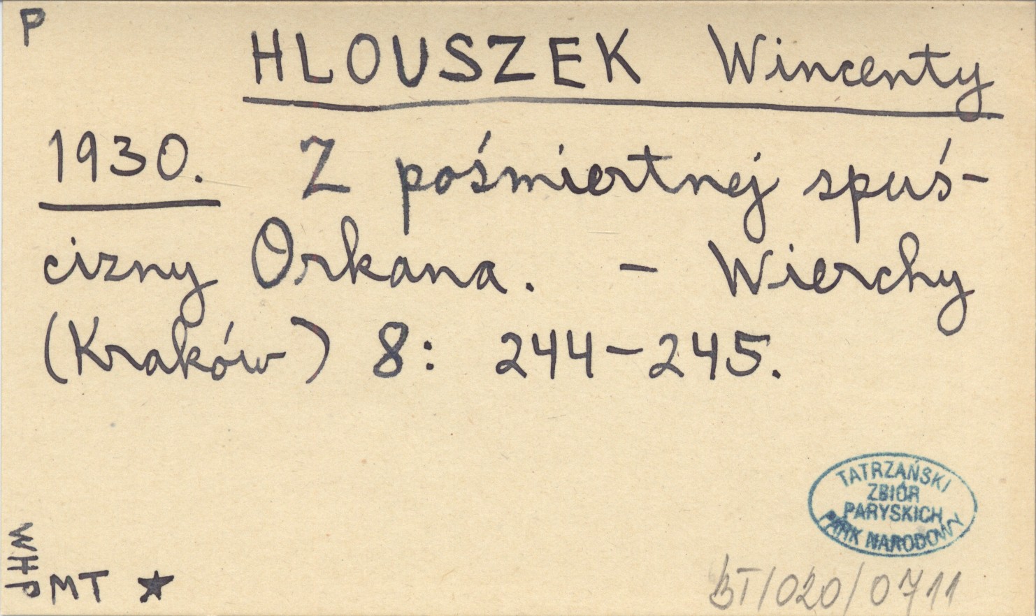 HLOUSZEK Wincenty 1930 Z pośmiertnej spuścizny Orkana.