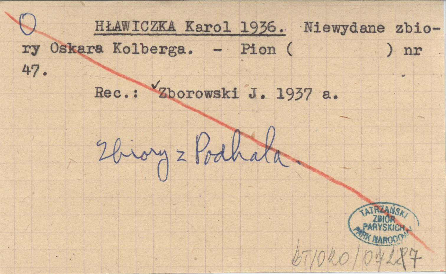 HŁAWICZKA Karol 1936 Niewydane zbiory Oskara Kolberga.