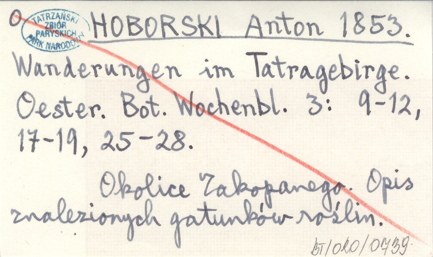 Österreichisches Botanisches Wochenblatt, 3: 9-12, 17-19, 25-28. Okolice Zakopanego. Opis znalezionych gatunków roślin.