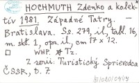 HOCHMUTH Zdenko i in. ; 1988 Nízke Tatry západ. Turistický sprevodca ČSSR, zväzok 10.