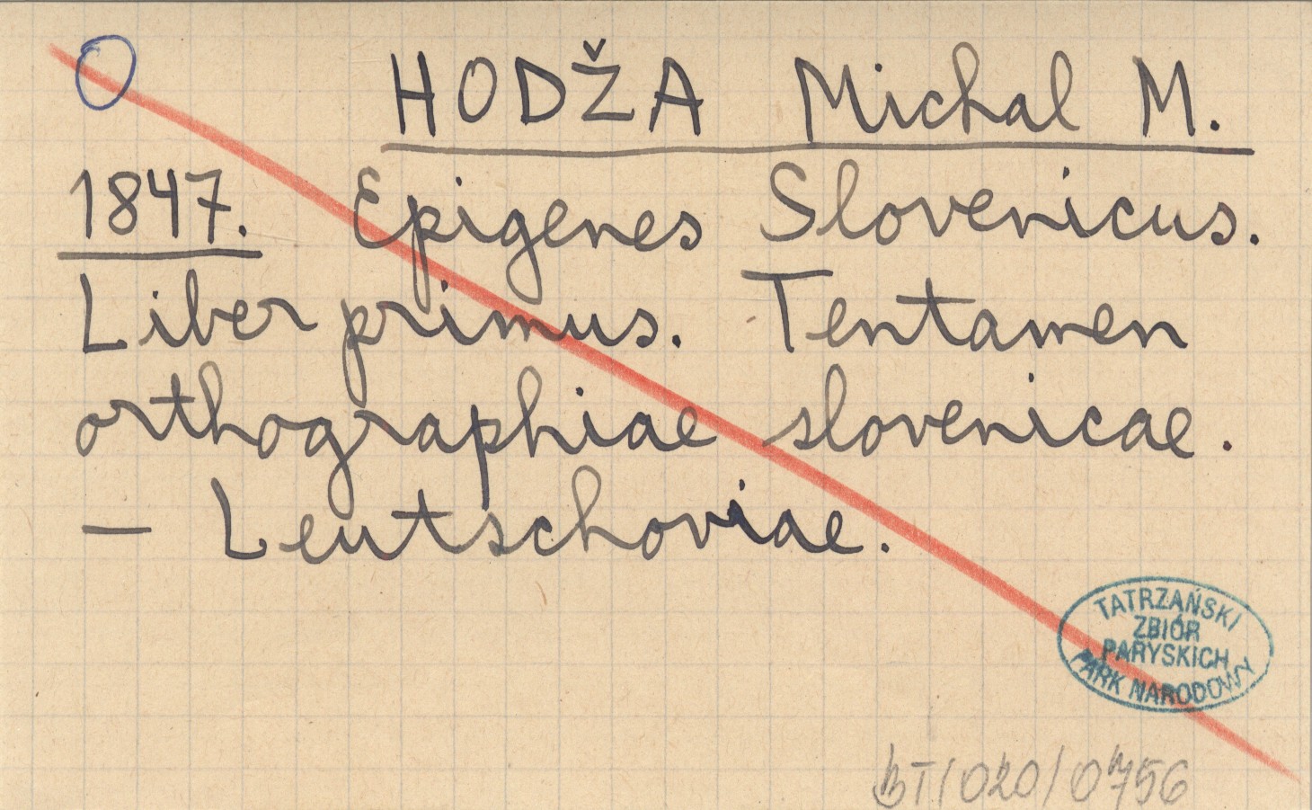 HODŽA Michal M. 1847 Epigenes Slovenicus. Liber primus. Tentamen orthographiae slovenicae.