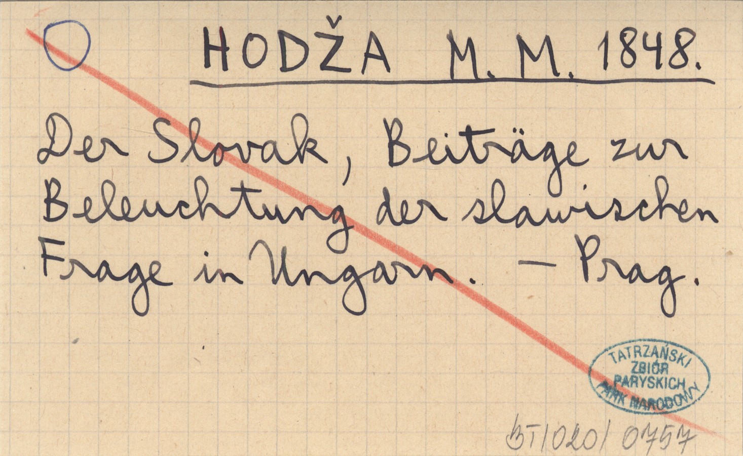 HODŽA M. M. 1848 Der Slovak, Beiträge zur Beleuchtung der slawischen Frage im Ungarn.