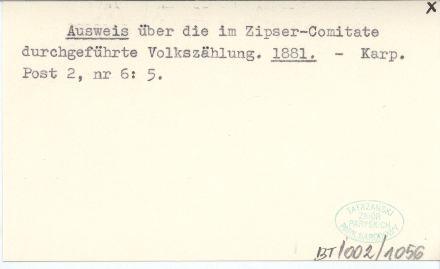 Ausweis über die im Zipser-Comitate durchgeführte Volkszählung. 1881