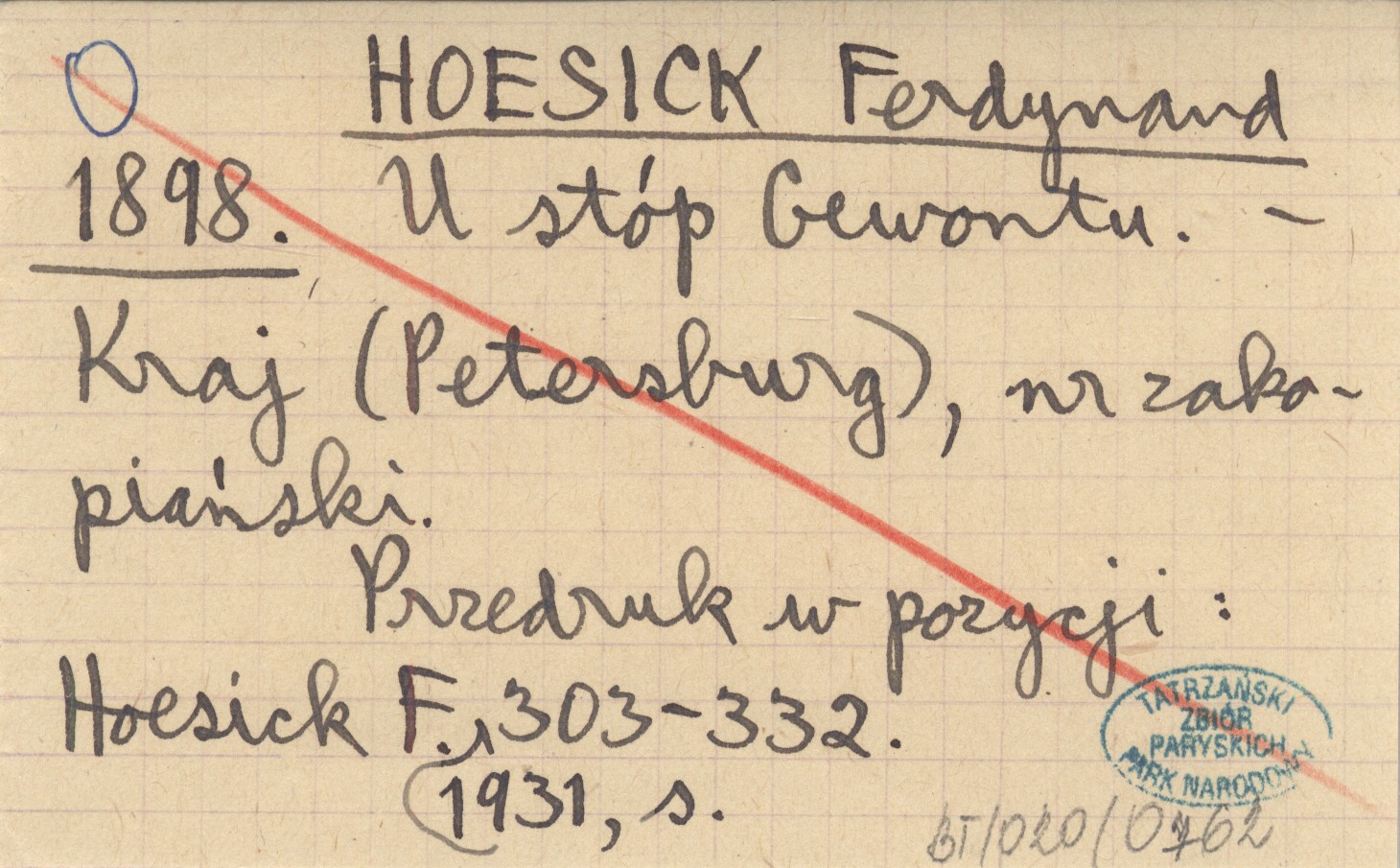Kraj (Petersburg) , Nr zakopiański. Przedruk w pozycji: Hoesick F. 1931, S. 303-332.