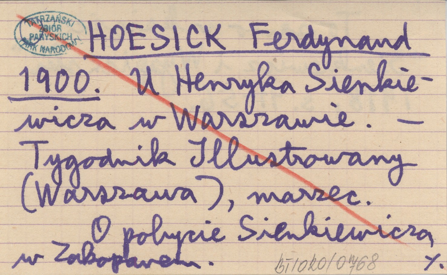 HOESICK Ferdynand 1900 U Henryka Sienkiewicza w Warszawie.