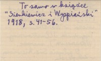 Tygodnik Ilustrowany (Warszawa) , 03.1900. O pobycie Sienkiewicza w Zakopanem. To samo w książce "Sienkiewicz i Wyspiański" 1918, S. 41-56.