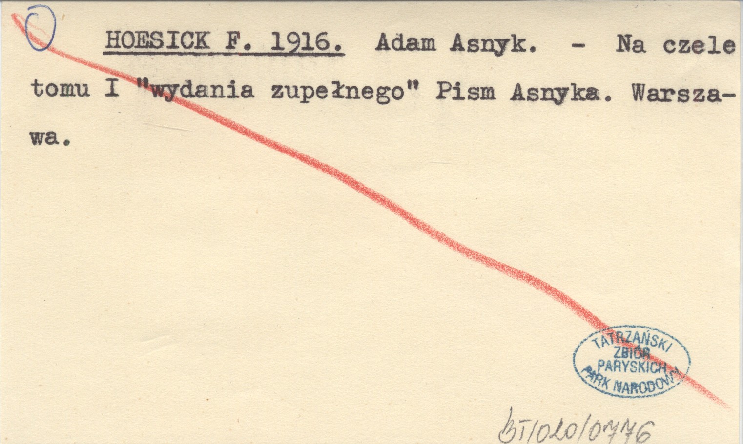Na czele I "wydania zupełnego" Pism Asnyka. Warszawa. ,